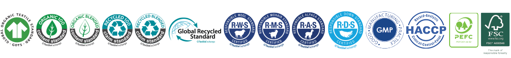 GRS: The GRS is an international, voluntary, full product standard that sets out requirements for third-party certification of recycled content, chain of custody, social and environmental practices and chemical restrictions. The goal of the GRS is to increase use of recycled materials in products and reduce/eliminate the harm caused by its production.